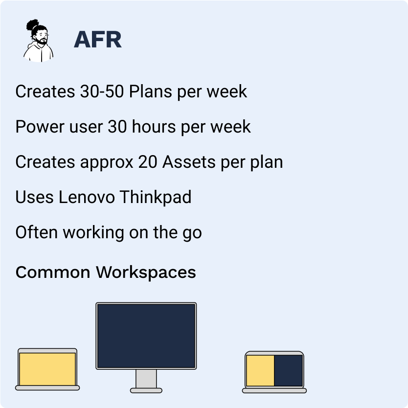 Using HEAP I worked with a PM to get an idea of how many assets were added to an account and how many accounts an AFR (our power user) were adding on average per account. This would give us a good idea of what type users and workflows involved.