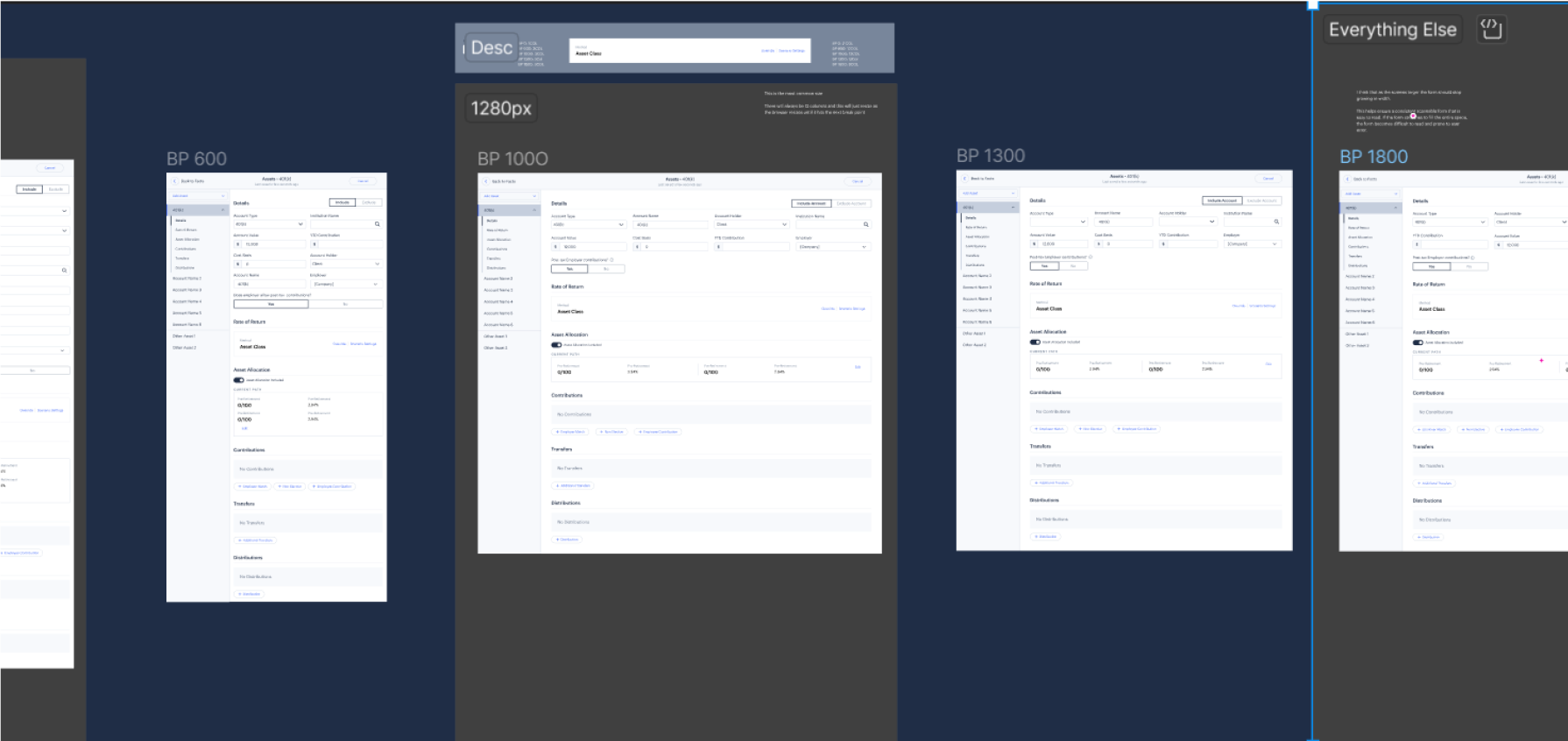 Leveraging Bootstrap Grids, we transformed these insights into specifications for the 5 available Breakpoints within our design system. This streamlined the process for developers to adopt and implement the responsive new forms. Utilizing Figma's Collections feature, we crafted dynamic prototypes that effectively illustrated the functionality of these pages.