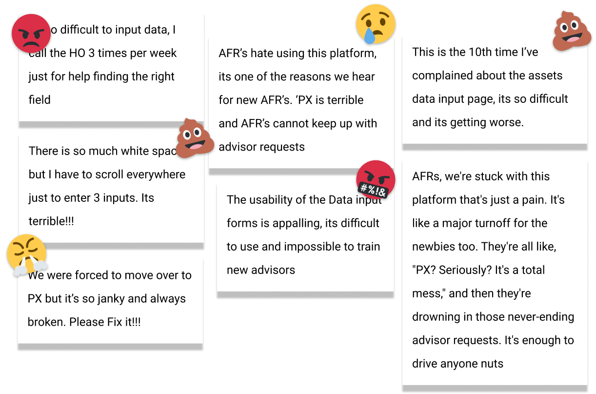 Users hate using PX, especially for data input. These users spend 4-6 hours each day using a handful of broken forms, this generated lots of complaints, data input errors and user fatigue.