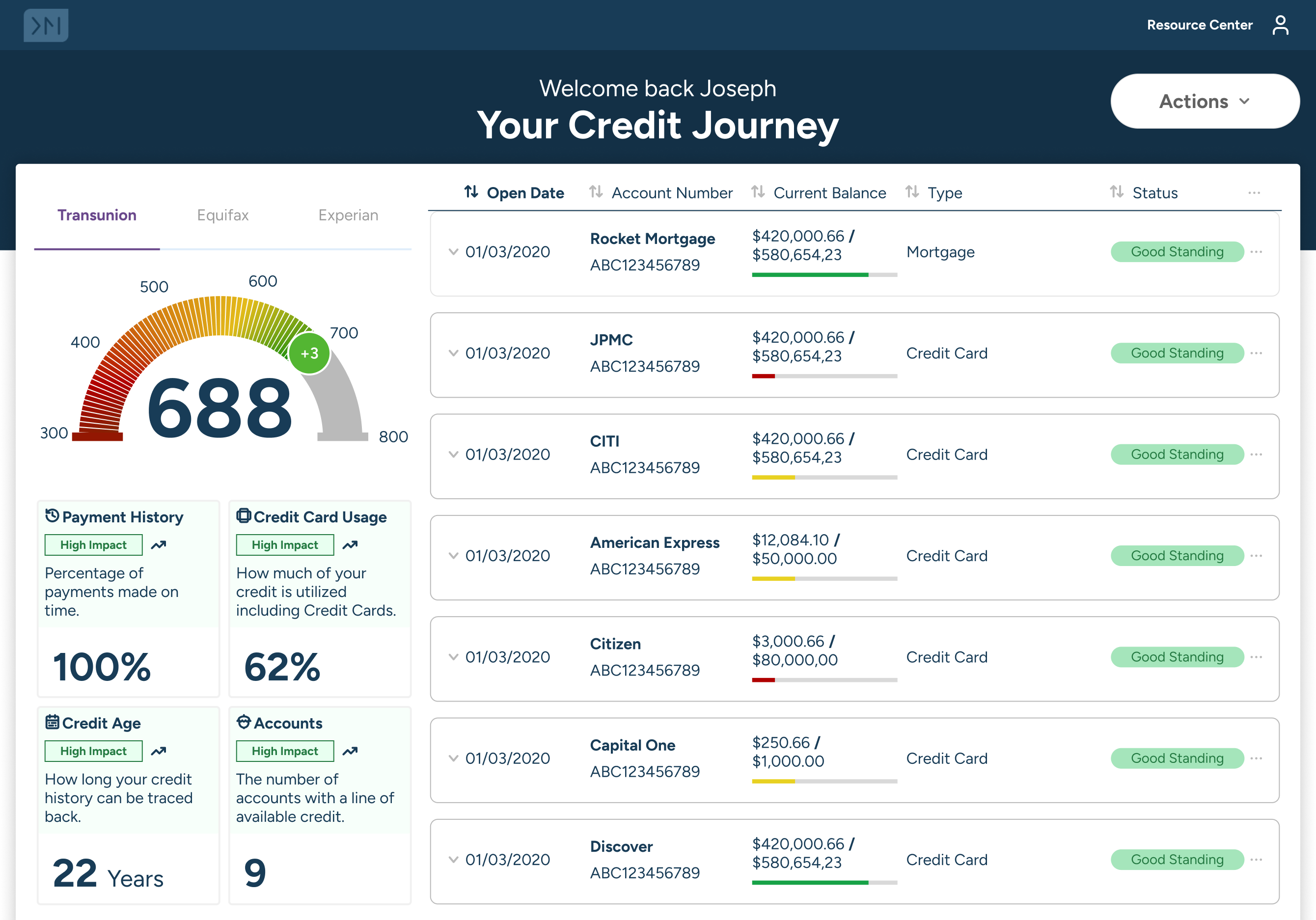 This is the prototype of the basic experience that would be displayed when the Credit Report Service is ran by the Loan Officer: