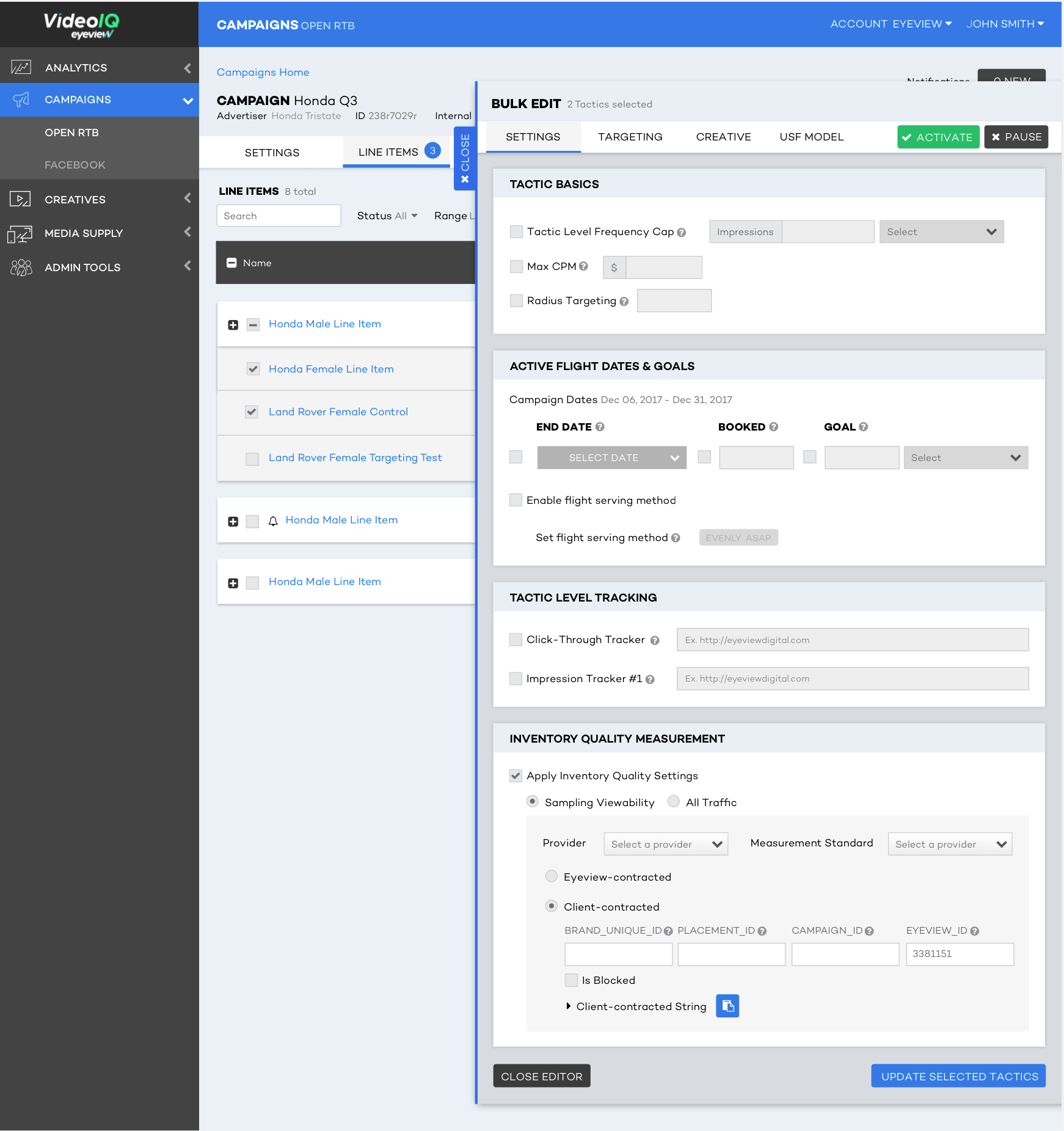 The Campaign management team finally had a platform where they could complete their basic tasks in one simple workflow. If a campaign had 30 or more tactics then the Campaign Manager would need to make a change 30 times. To resolve this I design a bulk editing tool that would fit into their current workflow and was now usable across teams.