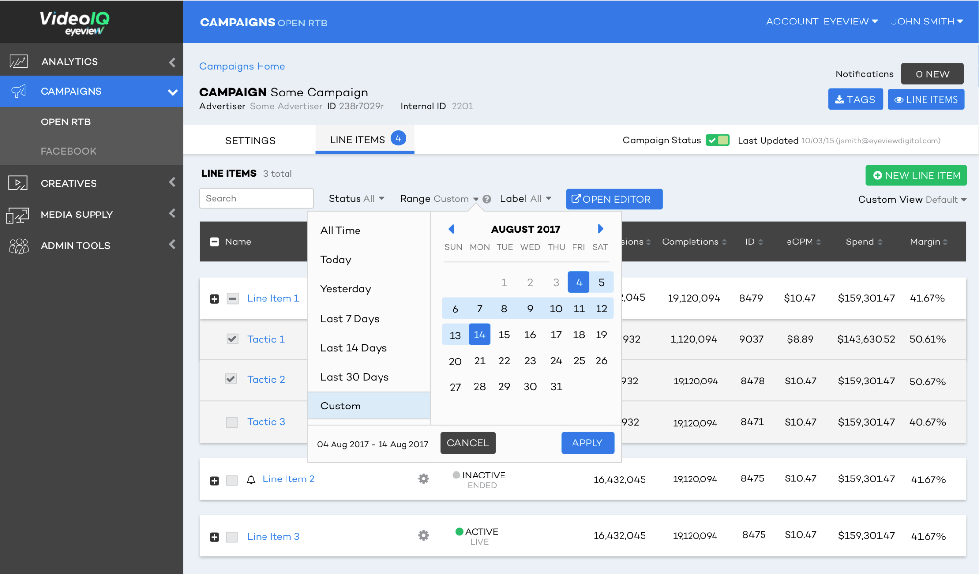 Eyeview Digital is an ad tech platform that delivers $60m in ad revenue per year. In the role of Senior UX/UI Designer I was responsible for researching and designing solutions to meet business goals.